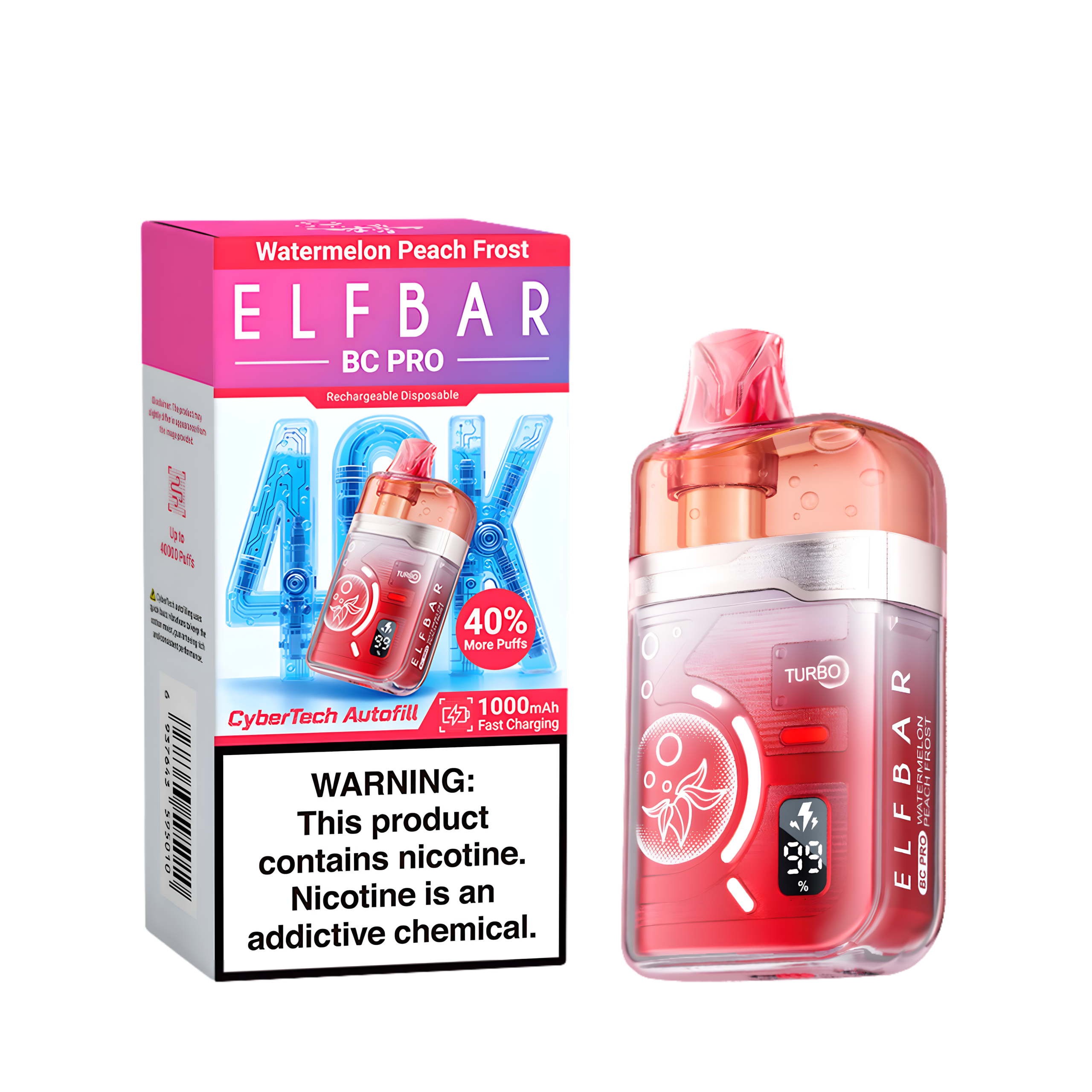 ELF BAR BC40000 PRO WATERMELON PEACH FROST 5% RECHARGEABLE